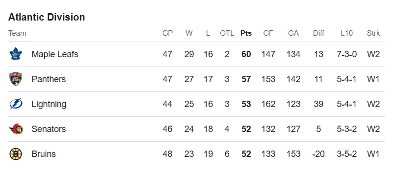 Toronto sits at the top of the Atlantic Division with a 29-16-2 record, while Tampa Bay, currently in third, trails with a 25-16-3 record. Both teams have their eyes on the standings as they face off in what promises to be another intense divisional matchup.