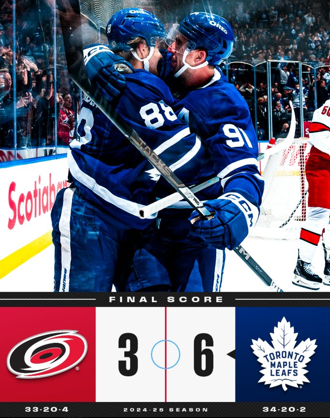 The Toronto Maple Leafs returned from the 4 Nations Face-Off break in dominant fashion, securing a 6-3 victory over the Carolina Hurricanes in what was an encouraging offensive display.
